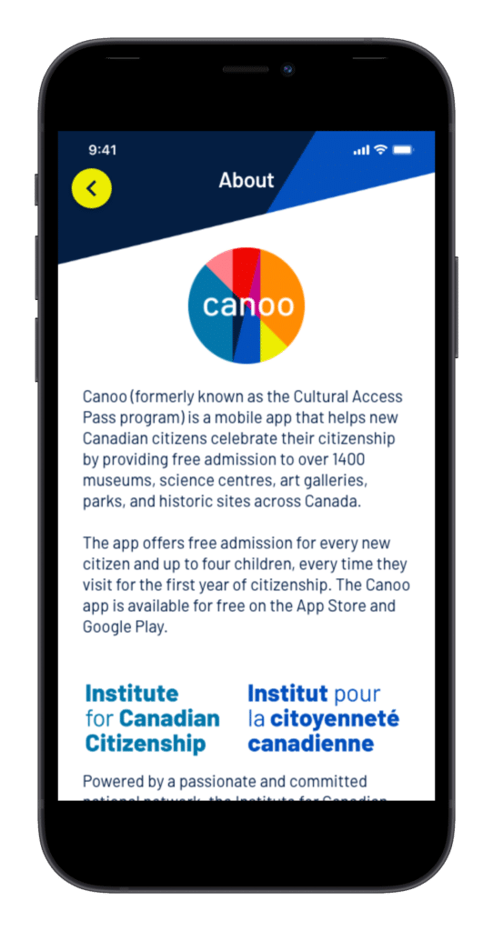 1) Our team utilized our design thinking sessions to uncover opportunities for improvement and suggest mobile best practices that would enhance the overall user experience of ICC's Canoo app. Through these insights, we were able to create a user-friendly application with a refreshed UI, simplified navigation, streamlined user verification and sign-up processes, and intuitive user flows. As a result, the app became a more engaging and interactive digital platform, enabling new Canadian citizens to connect with fellow citizens and fully embrace their identity as Canadians through arts and culture experiences in a fun and straightforward manner.